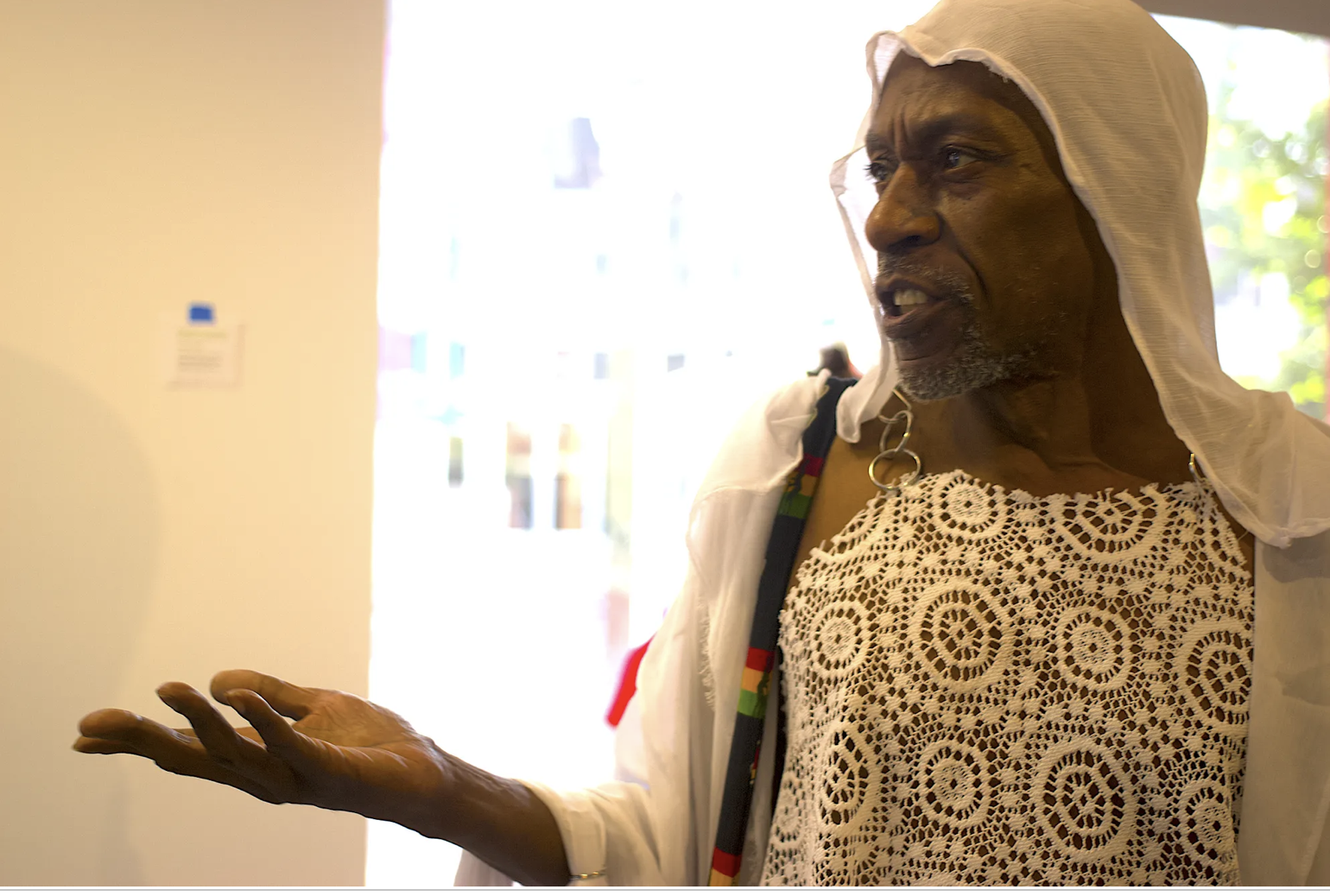 “I know it says don’t touch, but I just want to touch it,” Donald Carter said, making his way around a newsprint-constructed dress by artist Susan McCaslin. “Something about it is so magical.”