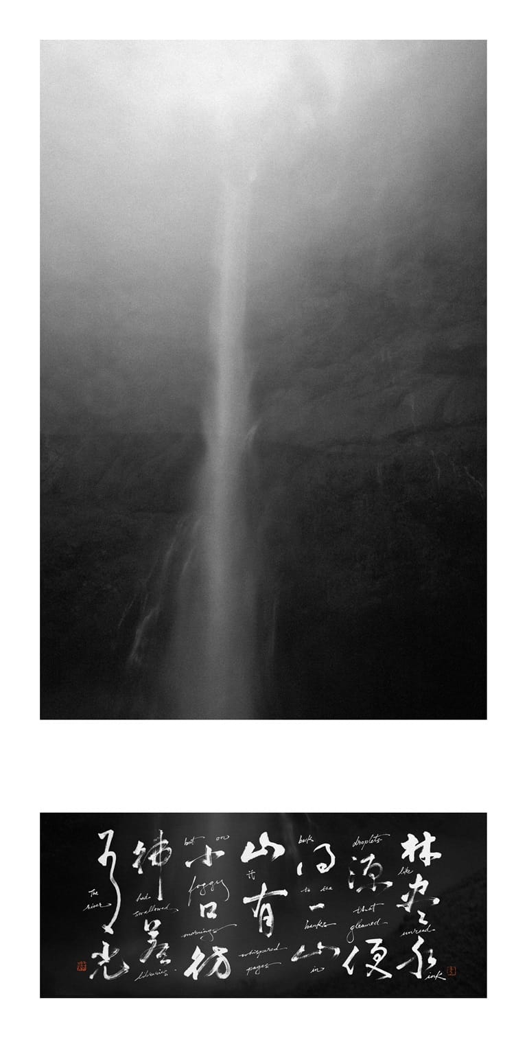 The exhibit features Western perspectives on East Asian art as well, such as Michael Cheney’s piece 陶-Childs, which incorporates his photography of nature in China with calligraphy in both English and Chinese. Cheney explained in his interview that he came to his art by combining work that his father and grandfather did, which were both artistic and commercial in nature. The melding of different worlds is a key theme in Cheney’s work, and his mixture of calligraphy and photography embodies the “three perfections” philosophy of Chinese artwork.