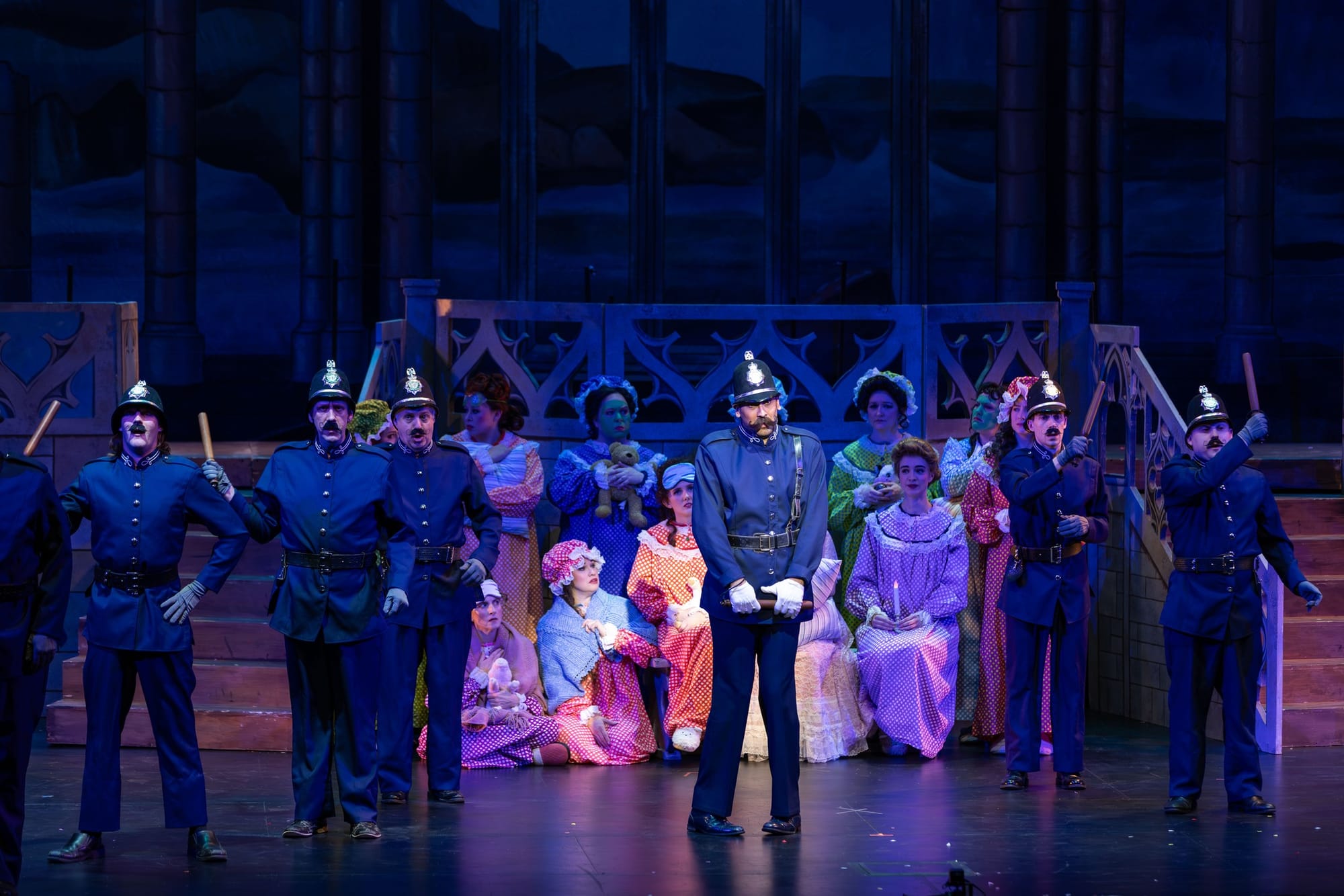It was worth the wait. The plot of this show is insane and frankly too much to get into; suffice it to say there are multiple plans and mix-ups involving Frederic and his nurse Ruth, a band of pirates, a Major-General and his many, many virgin daughters, and a nerveless police force, all of which librettist W.S. Gilbert knots together and splendidly unravels over two rollicking acts. Just when you think all’s well, another spanner goes into the works, so you get a satisfying zig-zag through mayhem and resolution that bounces along on some of the most delightful music ever written.