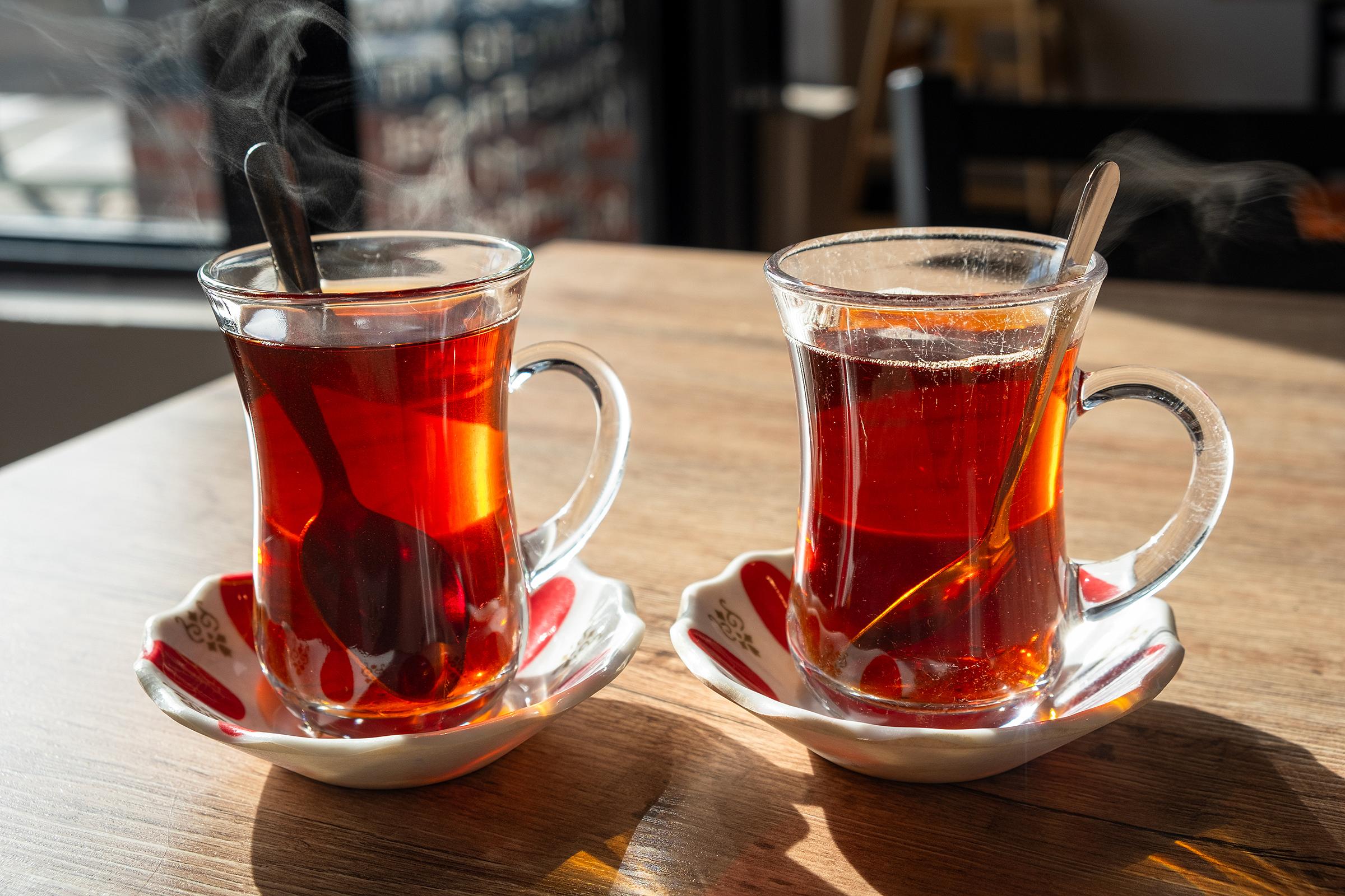 This is the part of the review where we usually describe the ambience that we took in while we waited, but there was no wait time. Our drinks arrived right away, aromatic steam rising from the traditional tulip-shaped tea mugs and curling prettily in the wash of sunlight. Turkish tea is brewed over heat for an extended period of time, and as a result is generally rich in tannins.