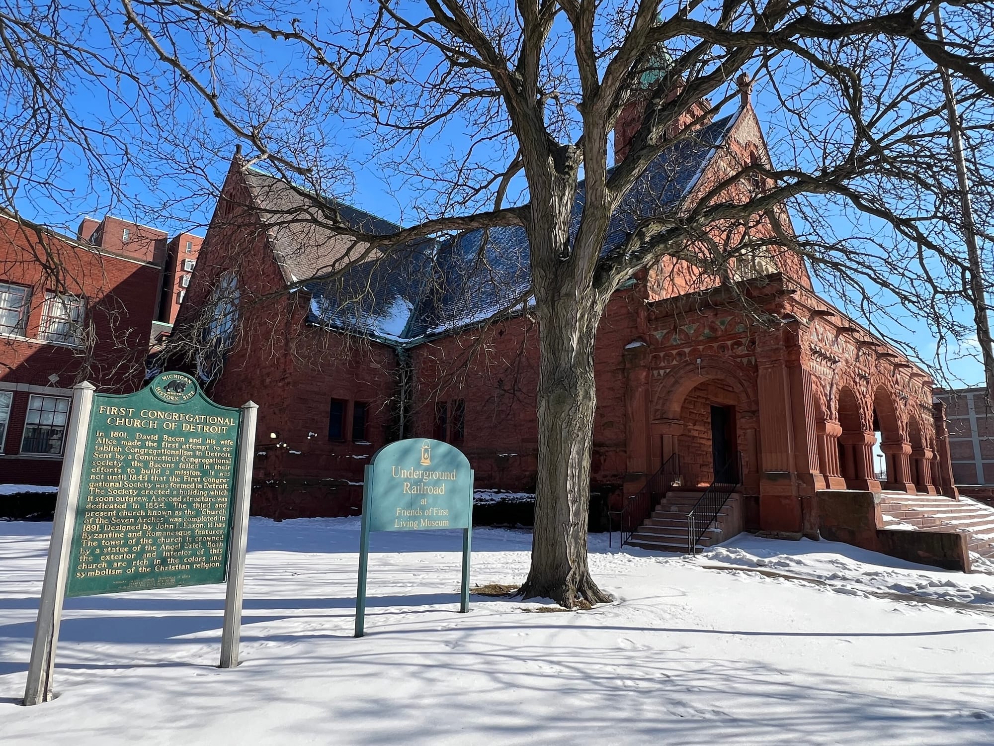 At the corner of Woodward and E. Forest avenues in Midtown Detroit sits a stunning Romanesque/Byzantine structure made from red sandstone. The First Congregational Church of Detroit is one of the many spectacular churches that dot Detroit’s major throughfare, but its quiet basement museum has a less glamorous – and arguably more important – story to tell.