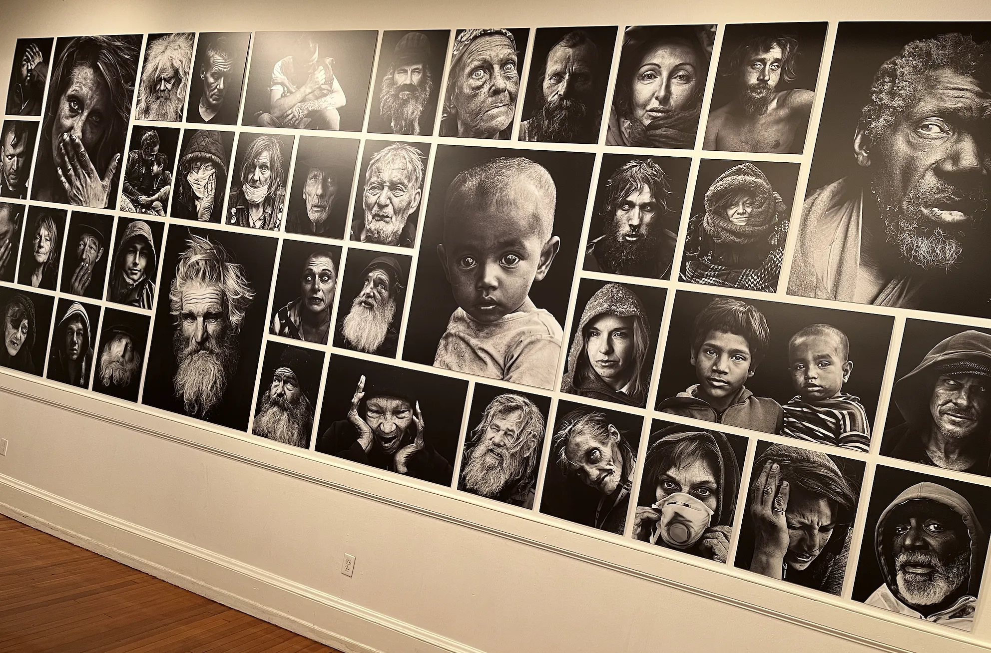 The cardboard boxes — the latest installation in an ongoing project by the artist Willy Baronet called “We Are All Homeless” — offer perhaps the one powerful antidote to the show’s, and the Mutter’s, failed approach. It turns out that faceless messages convey more humanity than all the close-up facial portraits displayed elsewhere in the exhibit.