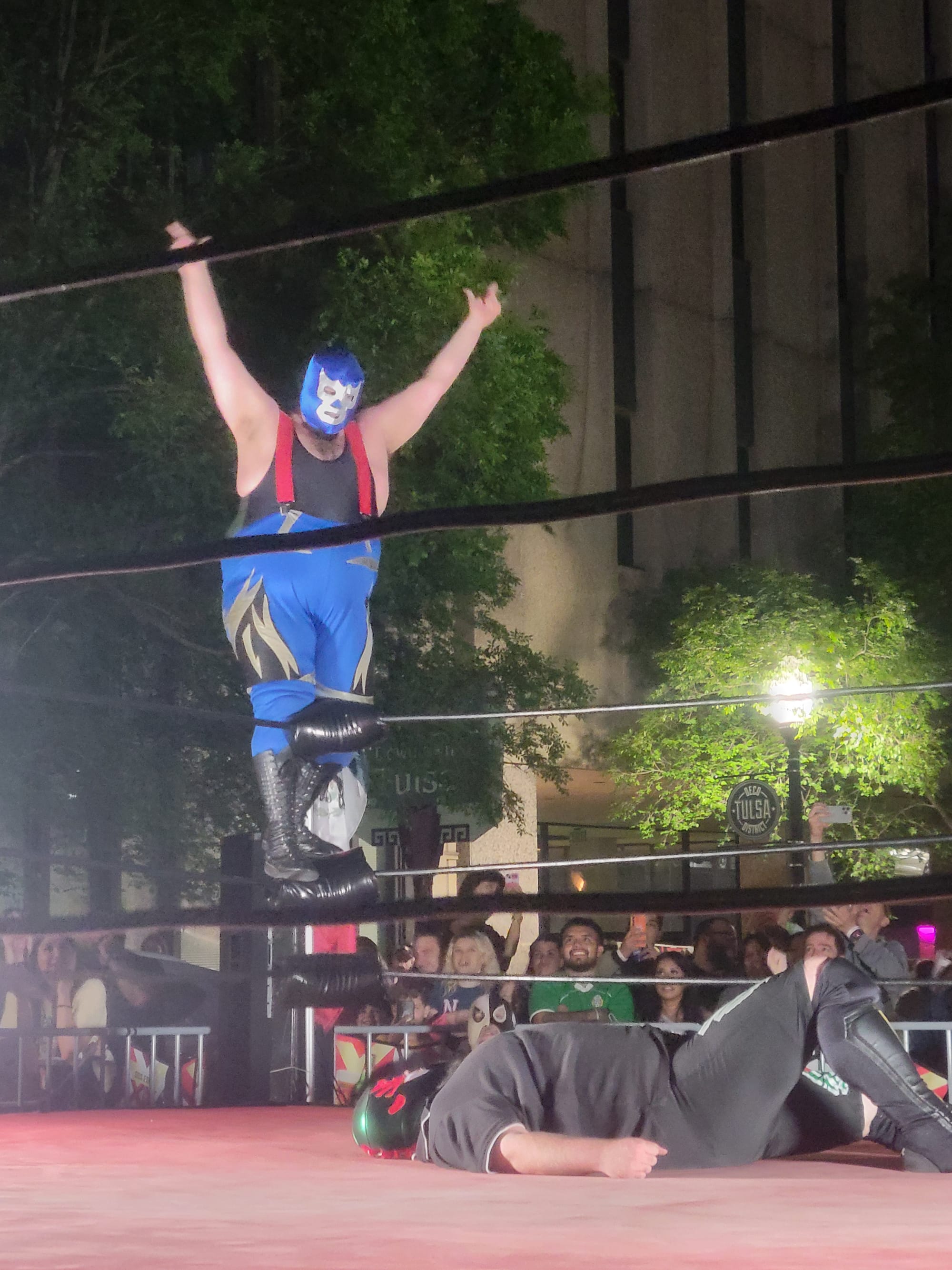 But it wasn’t just kids feeling the lucha love. While many Tulsans might not consider themselves wrestling fans, thousands of people make Elote’s Lucha Libre an annual tradition. (The truth is that everyone is a pro wrestling fan; most just don't realize it yet.) Part of the appeal: lucha libre is a radically immersive experience. Unlike watching televised pro wrestling at home, going to see matches live allows audiences to take part in the show by cheering for the babyfaces (the heroes) and booing the heels (the villains).