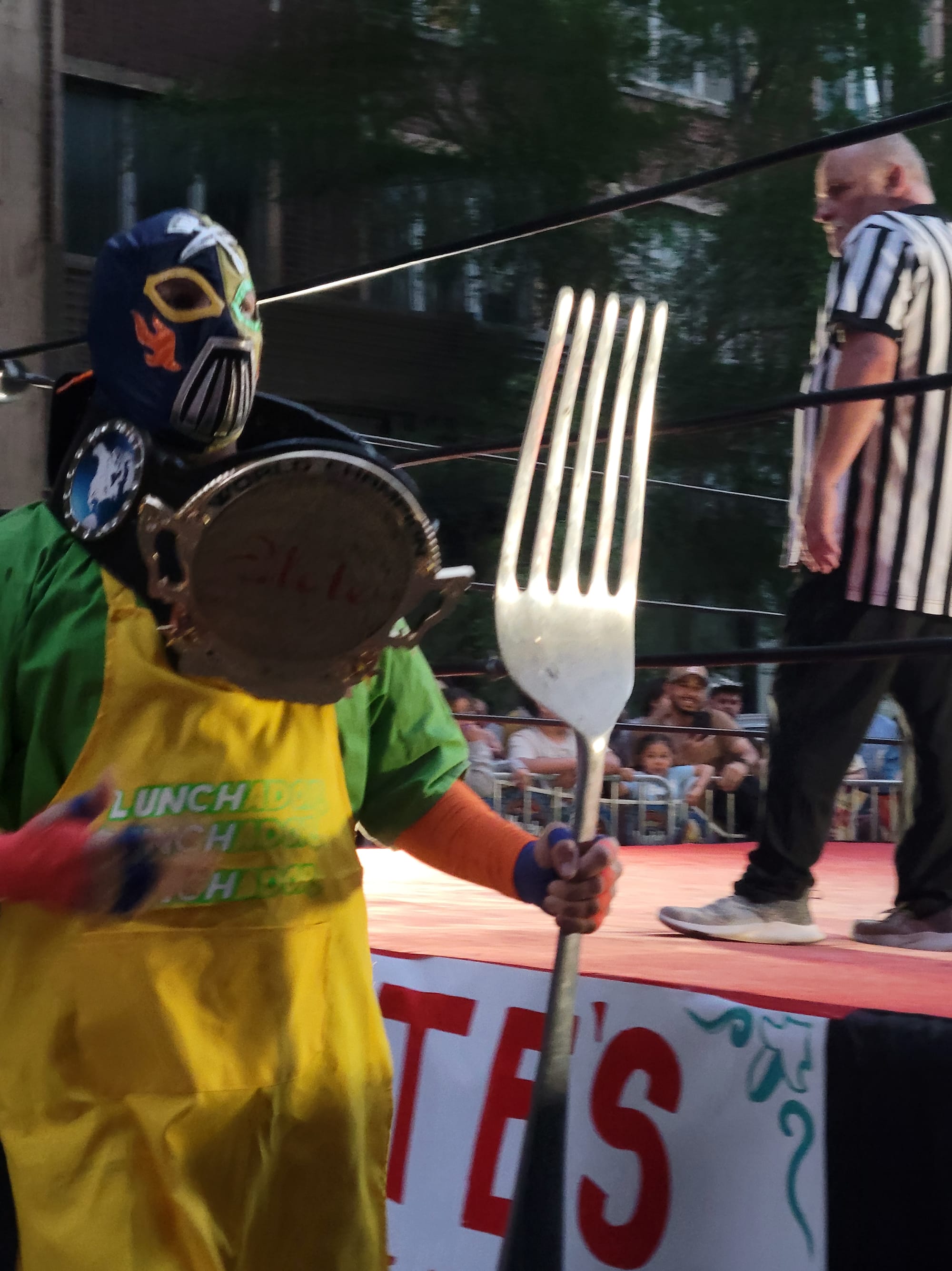 It was an epic fight that epitomized the spirit and skill of lucha libre. But the weekend saw so many excellent battles featuring personal and fan favorites: the reigning Elote Champion, the Lunchador, came to the ring with a giant fork which he eventually used to defeat his reviled challenger and former friend El Superstar; Dove Puro and El Gallardo Uno put on a series of highly physical and hard-hitting matches against one another, with Puro's powerful slams grounding the quicker, high-flying Uno; and Eddie Le Vaughn and El Sharko put on what can only be described as a hoss fight—and a delightful hoss fight it was.