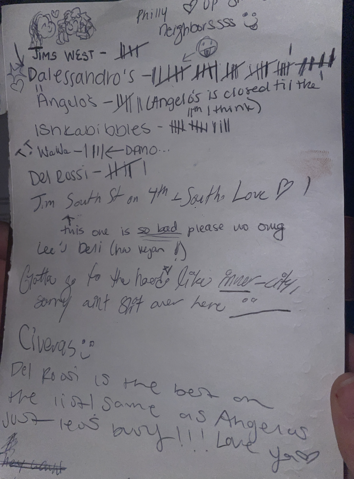 The podcasters on stage — and the cheesesteak survey they passed around the crowd.