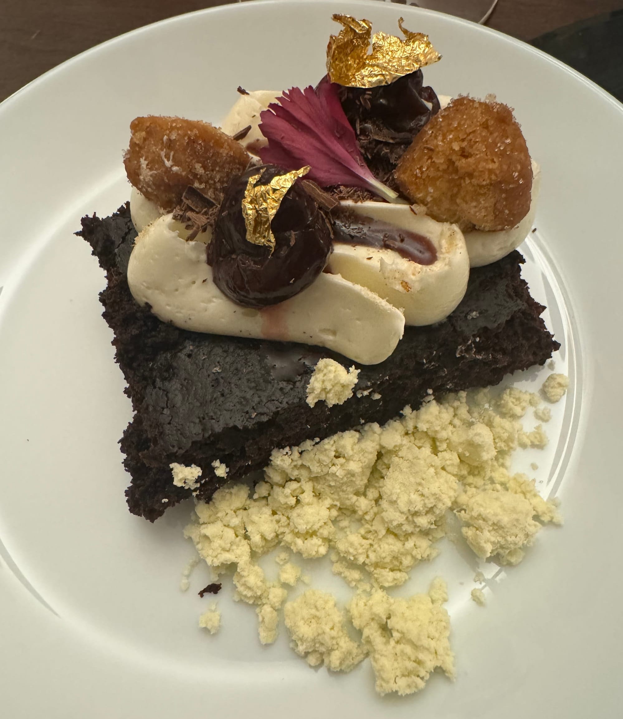 Her take on “No Ordinary Love” was a perfectly balanced, not-too-sweet dark chocolate cake with citrus chin chin, a burst of rich juiciness from tarragon-infused cherries and a Lebanese olive oil “snow” that offered one of the most perplexing textures my tongue has ever felt, like cotton candy disintegrating in your mouth but also not quite. It was totally its own thing and completely new to me.