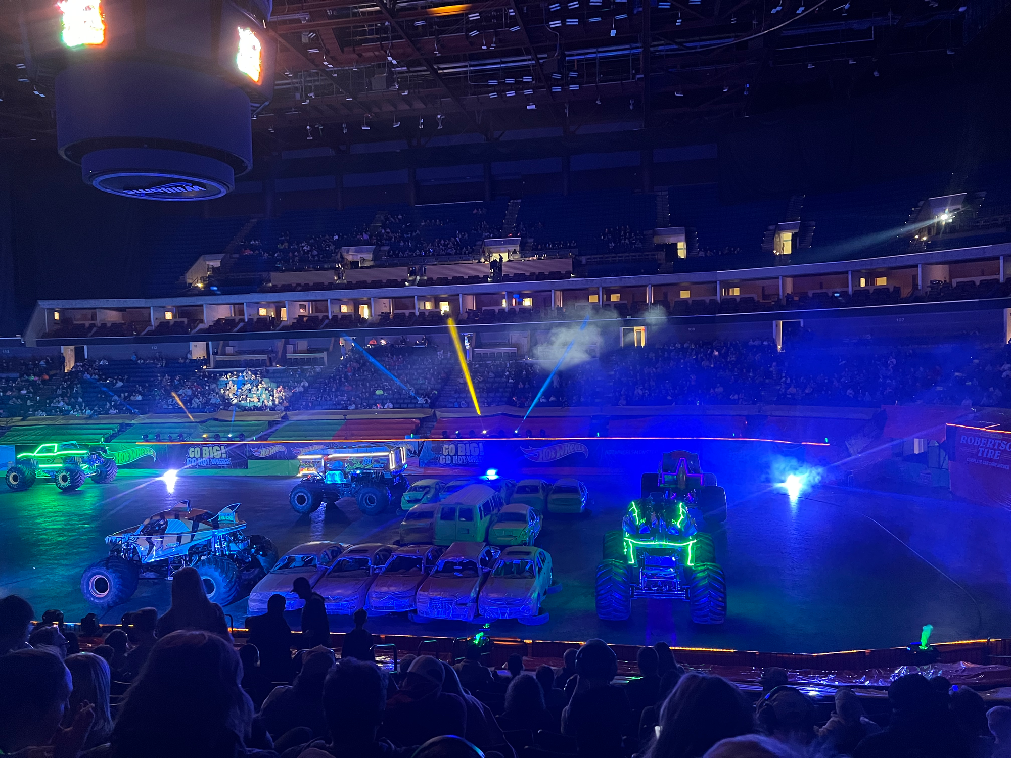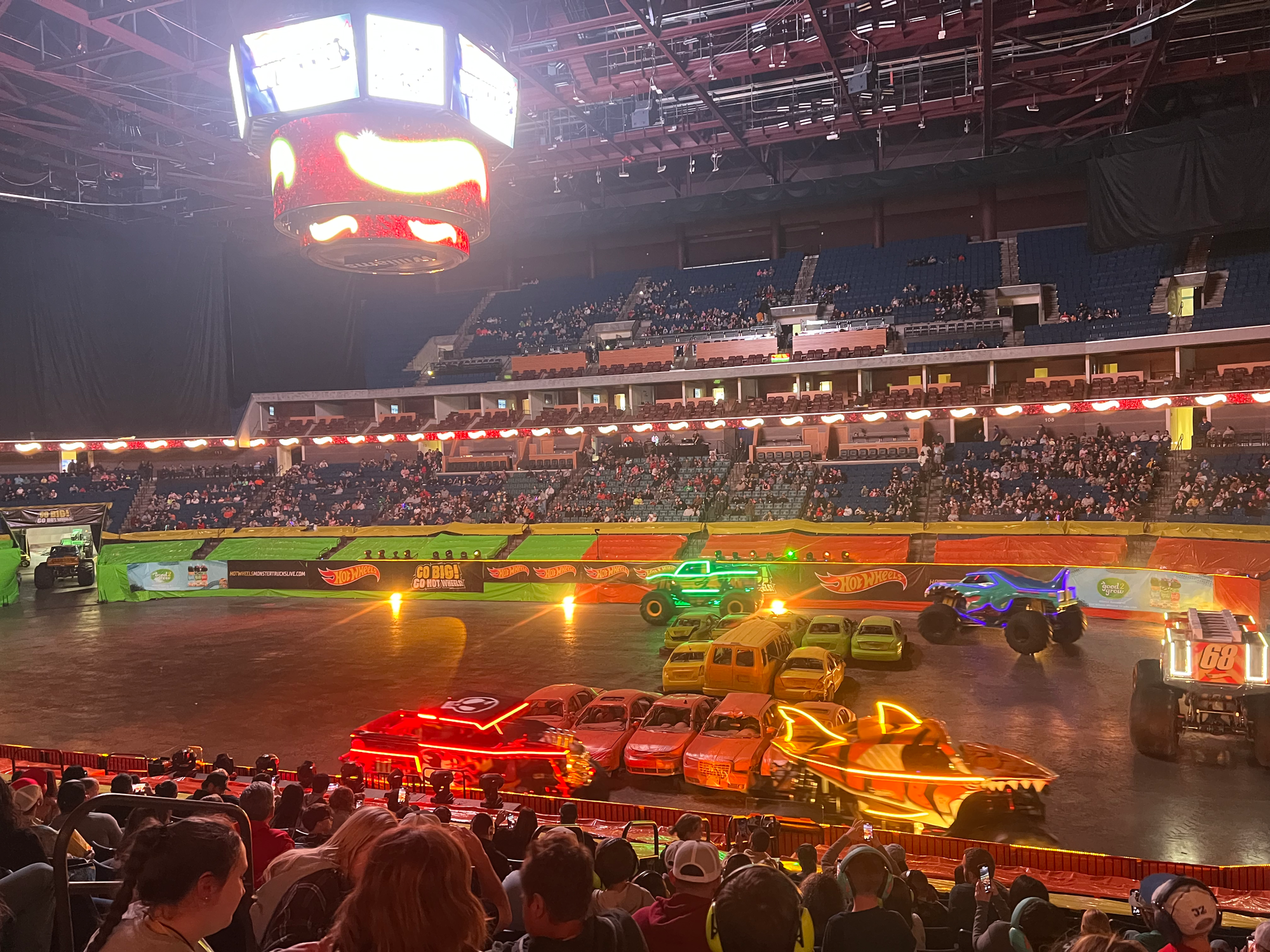Watching a gigantic fire truck-themed truck do wheelies is awesome, and watching Bigfoot do donuts is also awesome. It’s in the in-between where my eyebrows lowered. This was a half-full BOK Center, and the hour was late for small children, so there was a discernible lack of energy, even when directly asked for it by the hosts. There was also a significant amount of elaborate parallel parking. After flying heroically through the air and landing on a bunch of wrecked cars, the trucks pull to the side of the arena and turn their lights off without much ado.