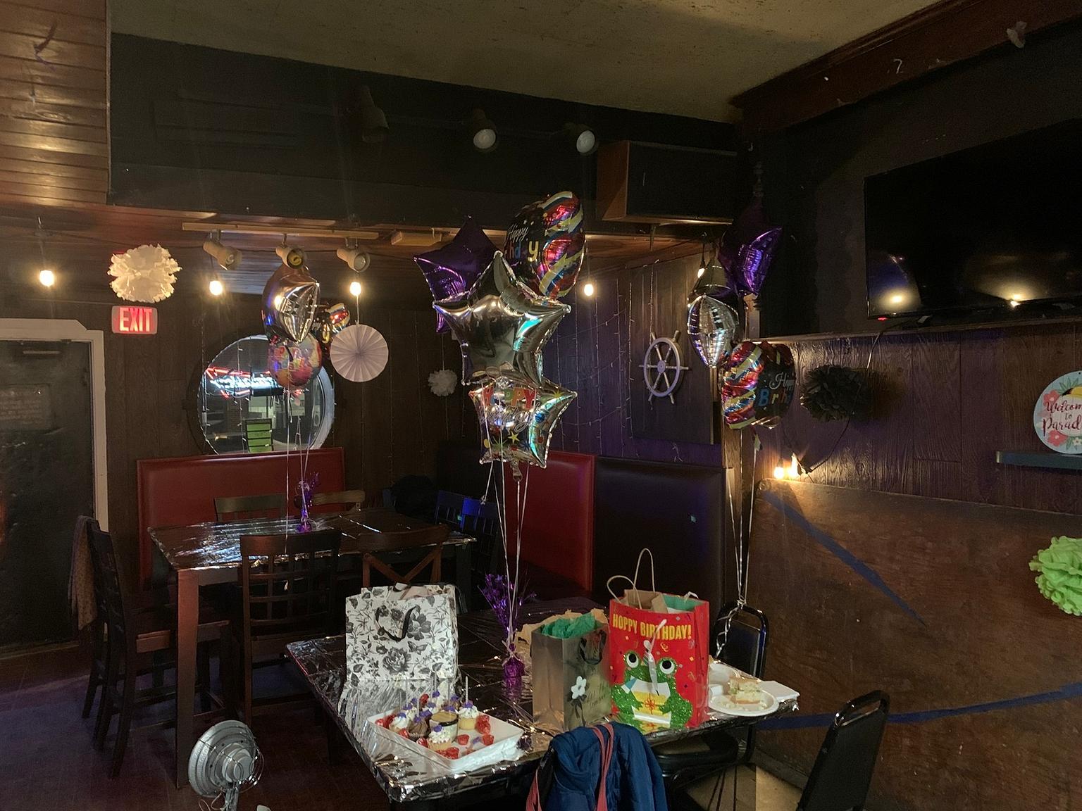 We walked into the one-room establishment, and it was packed with people dancing and laughing. On a table near the door were a couple of fancy gift bags and a few balloons. Over the bar counter, in colorful letters, hung the words “Happy Birthday!”