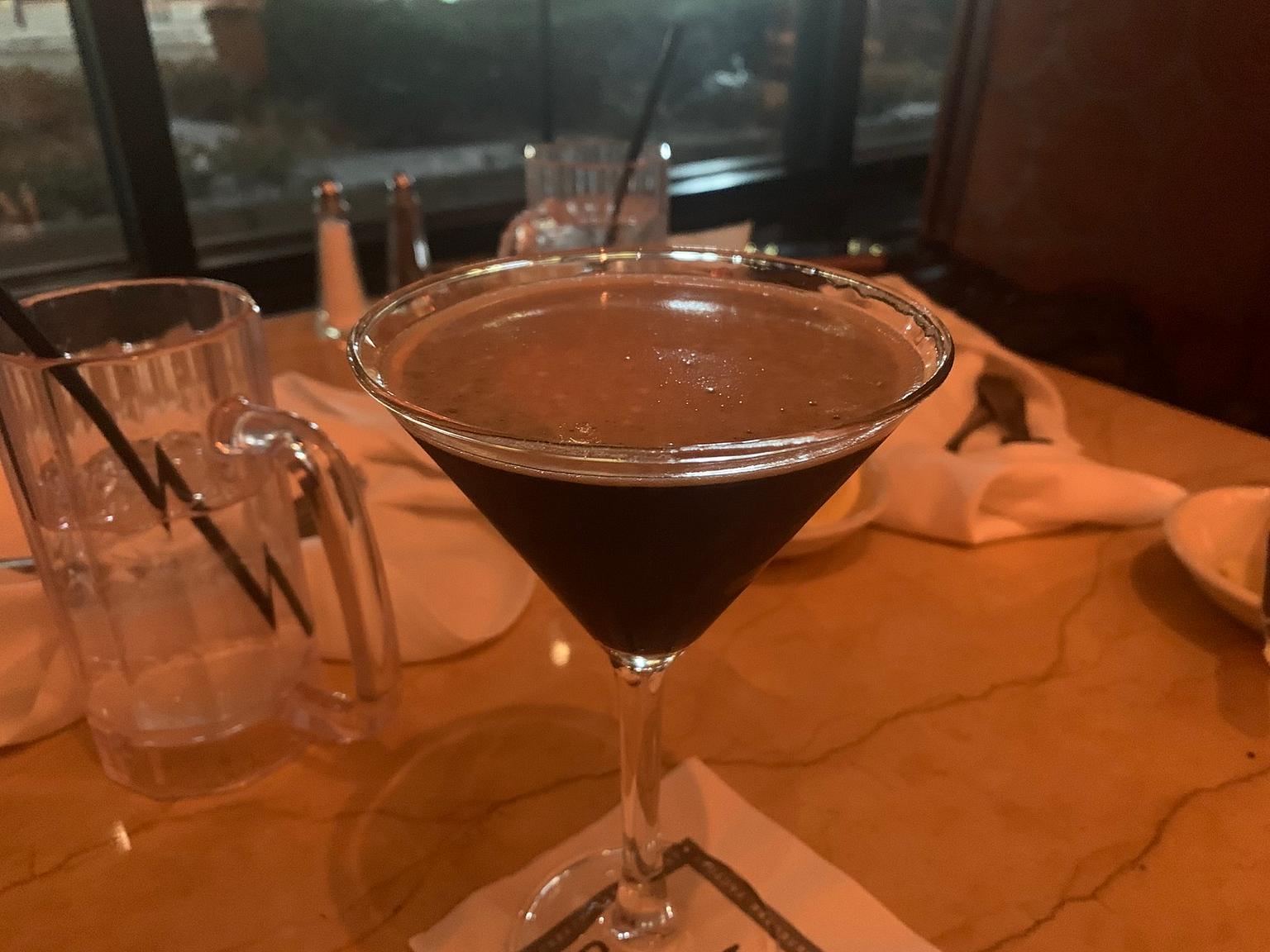 She chose to get an espresso martini. It’s exactly what it sounds like: cold espresso with coffee liqueur and vodka. Even though I’m not a coffee drinker, I enjoyed my taste of the martini. The alcohol balanced the bitterness of the coffee nicely, and the drink had a smooth, full taste.