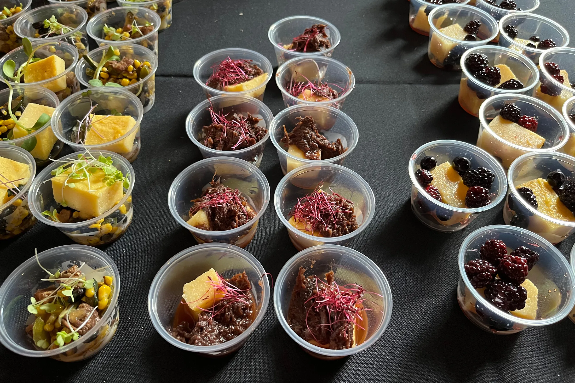 And what about the food? Oklahoma’s chefs, brewers, and mixologists came through with offerings that ranged from sexy to hearty to refreshing. I wish I could say I tried something from every table; if I’d been able to stay the whole four-hour span of the event, I might have managed it, with plenty of dance breaks to help pace me. I almost ran to the first table I saw, bearing the home run return of Ma Der’s crackly rice lettuce wrap. I ignored everyone and entered another dimension as I took in three life-changing corn mush cake bites from NATV (with braised venison and BBQ wojapi, pork belly succotash, and pickled berries). I loved Straight Edge Lounge’s Stay Golden Wellness Tonic — turmeric, sparkling zero-alcohol rosé, elderflower, lime, rosemary — and Noche’s gazpacho-adjacent shrimp cocktail, with its cracker accompaniment and flirty heat. And it was beautiful to see the chefs having so much fun, with so much pride in their work and in the joyful faces of folks taking in their creations right in front of them.