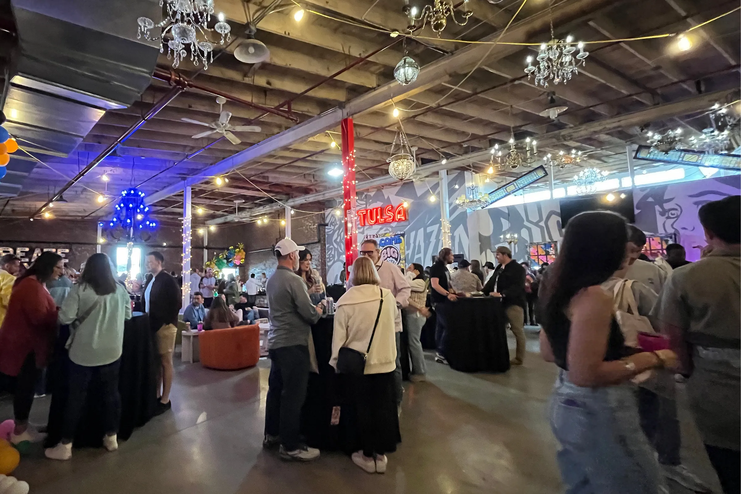 The Gateway — that building wedged into downtown’s east end, covered with colorful murals by Clean Hands and other Tulsa legends — is more compact than last year’s location, and while you might think that’s not the best idea when expecting a giant crowd, it actually worked so much better. Spread throughout three large rooms and a tent-covered outdoor area (all on one level), the event’s 30 Oklahoma restaurant, bar, and brewery tables were arranged so that the flow made it easy to glimpse something delicious-looking in someone’s hand, do a scan across the room, quickly make your way to whatever table they’d found it at, take a moment to dance in front of DJ Hidden Display’s booth, and not even jostle too many people while doing it. (Everybody else was doing it, too.)