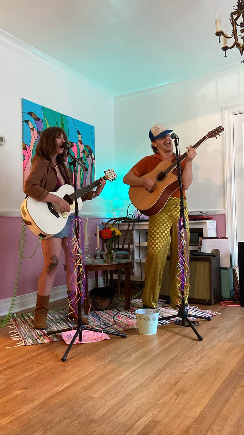 Pink Street Management invited me to read at their house show, Pride on Pink Street, so while I’m not an “objective” observer on this one, I do want to include it in my roundup. The well-curated music lineup featured The Ugly Cowboys, Early Birdie, and Bailey Boy, all performing acoustic sets. Some of the bands brought fewer members due to the intimate setting—a quaint pink-trimmed living room that held about 15 people sitting criss-cross—but each delivered moving performances. Especially poignant was Bailey Gilbert, the frontwoman of Bailey Boy, as she sang “Trickle Down,” an anti-capitalist protest number that had everyone stomping their feet. I became an instant fan.