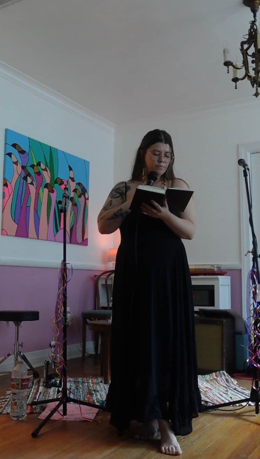 In between sets, Bailey Stephens-Johns (owner of the pink-trimmed living room and part of Pink Street Management’s team) performed some lovely original poems. I read a soon-to-be-published essay about transness.