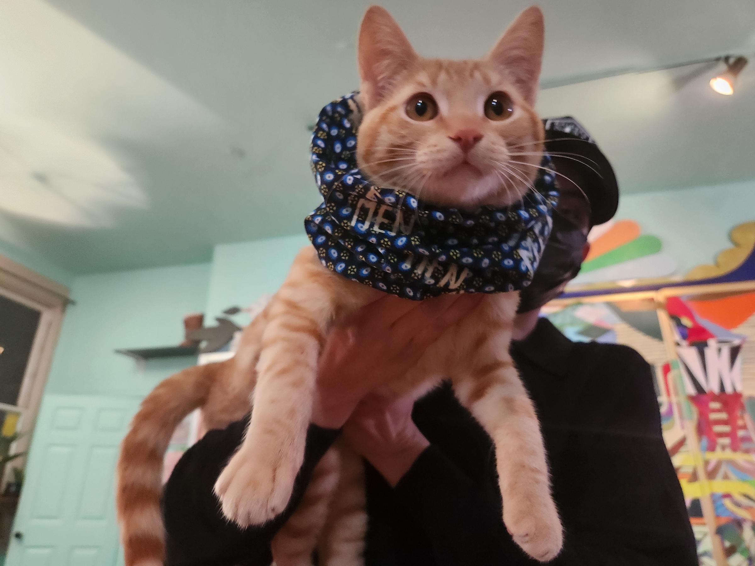 The room, a shared studio space for Xara Thustra, Monica Canilao, The Very Dirty Garden, and Lil Daddy Poke, was colorful and cheery. I’d arrived about an hour into the open house, and found its attendance sparse but friendly. Thustra’s STOP MEN prints covered racks of clothing, boots, iconic to most of the (queer, slightly grungy) arts scene around. A surprisingly chill special guest modeled an extra special piece.
