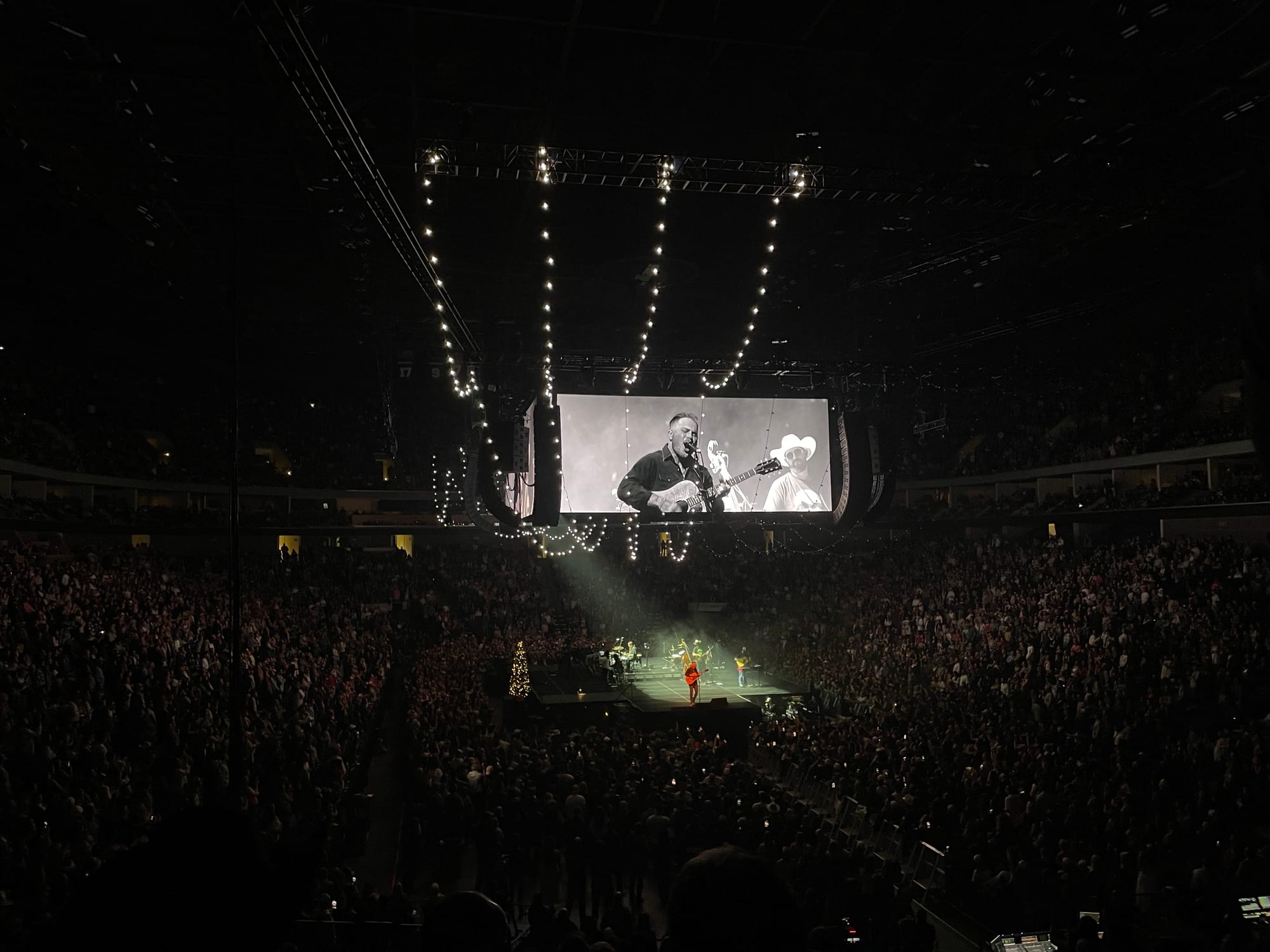Inside the arena, it was more of the same, at least at first. During Matt Maeson’s short opening set, showgoers were notably serious, though Maeson did get us to sing along with him just before he left the stage. Once Bryan’s band came on, though, packing the stage with at least 12 people, including horn players from Tulsa’s own King Cabbage Brass Band, the crowd was absolutely rapt. Nearly everyone stood to sing along with the opening song, “Overtime,” the second track of Bryan’s 2023 self-titled album. A couple of songs in, during “God Speed,” cameras scanned the crowd kiss-cam-style, catching cheesy grins from kids and adults alike, with little ones all over standing in the aisles to catch a good view.