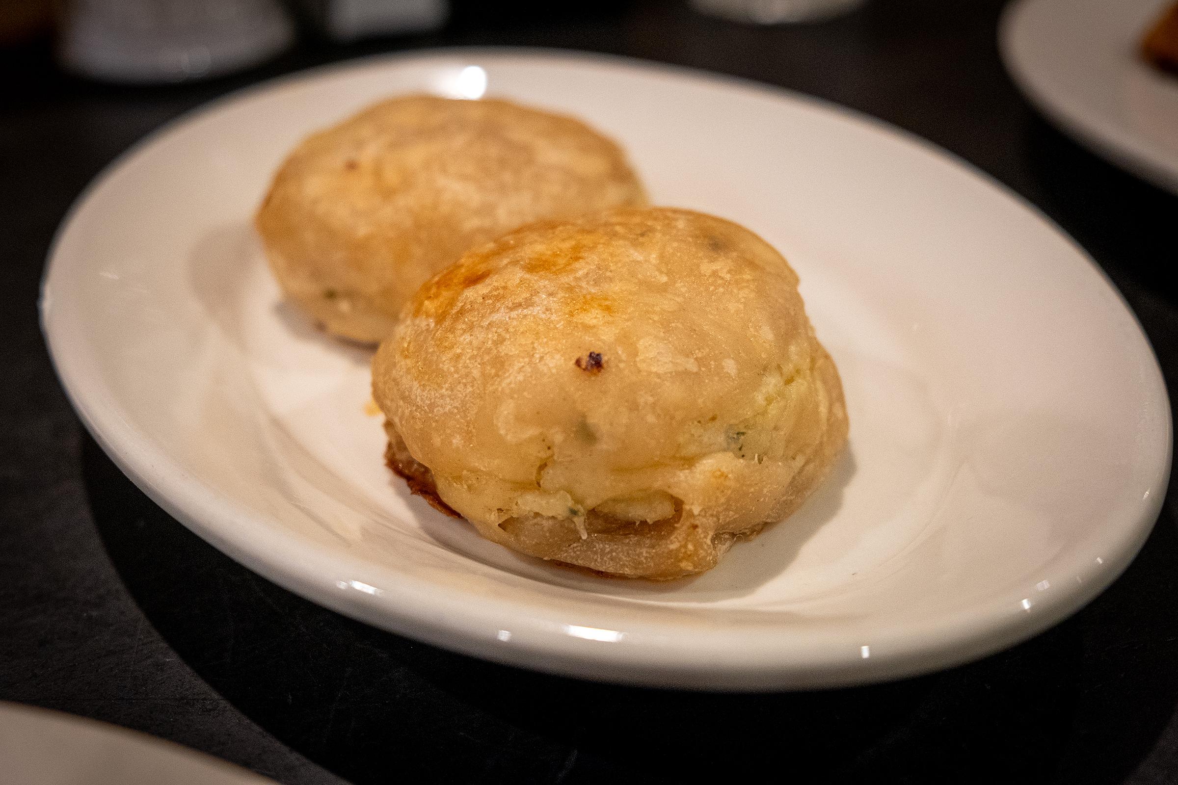 The homemade knishes (we chose potato) were fluffy on the inside and well-seasoned, not dry or dense at all, which is truly an accomplishment for a potato filling. On the other hand, the outer dough was a bit soggy and pale. Overall they were fine, but compared to everything else they seemed a bit boring.
